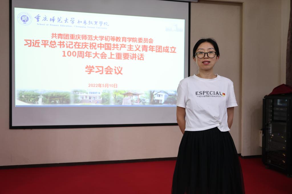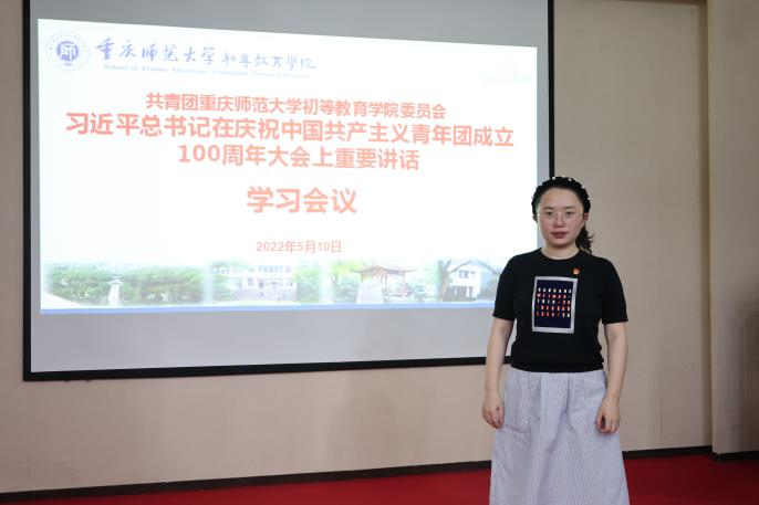 新时代共青团工作责任重大、使命光荣。要认真学习贯彻习近平总书记在庆祝中国共产主义青年团成立100周年大会的重要讲话精神,进一步加强学院各级团组织建设,不断增强引领力、组织力、服务力,团结带领团员青年坚定听党话、永远跟党走,努力成长为有理想、敢担当、能吃苦、肯奋斗的新时代好青年和小学四有好老师