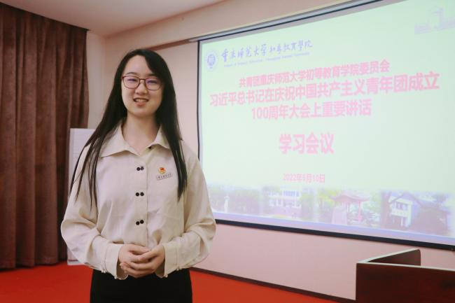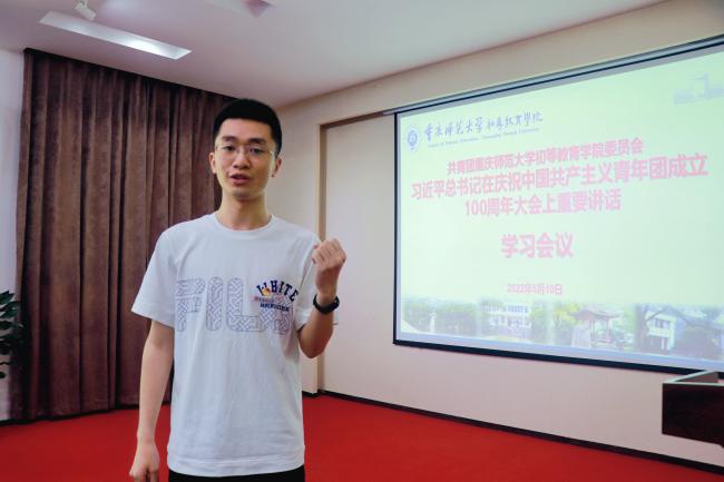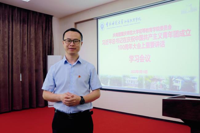习近平总书记在庆祝中国共产主义青年团成立100周年大会上的重要讲话,立意深远、振奋人心。党旗所指、团旗所向,学院党委要深刻把握新时代青年发展的新特点和新规律,解决新时代青年发展的困惑,不断完善健全党建带团建制度机制,用党的初心使命召唤青春力量,一往无前引领青年发展,为党育人、为国育才,培养扎根基础教育的新时代好教师。