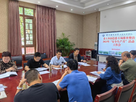 2023年“安全生产月”暨重大事故隐患专项排查整治工作动员部署会议。学院党委书记陈祖权主持会议,党政班子成员、各科室负责人、
