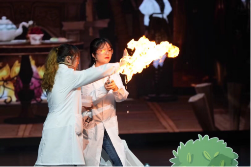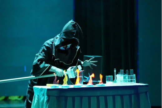《自然魔术师——风火雷电》是由我院林长春、钟绍波、陈放等教师指导白雅鹭、杨伊、朱鸿梅等10名科学教育研究生、本科生科普志愿者倾力打造的科普实验秀节目。节目利用空气动力原理的“空气炮”、金属电子跃迁现象产生的“焰色反应”、丁烷燃烧产生的“火焰掌”以及特斯拉电圈、静电屏蔽等科学实验让现场观众惊叹连连,掌声雷动。跌宕起伏的剧情、高潮迭起的画面、活泼有趣的故事情节引人入胜,大家仿佛身临其境地跟随主人公一起,完成了拯救森林的任务。