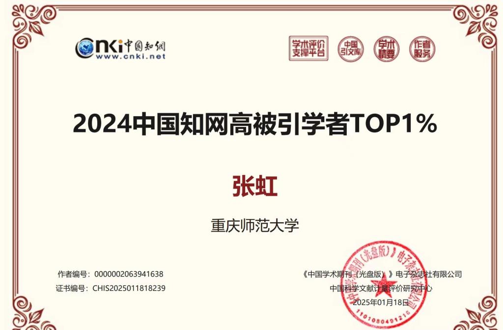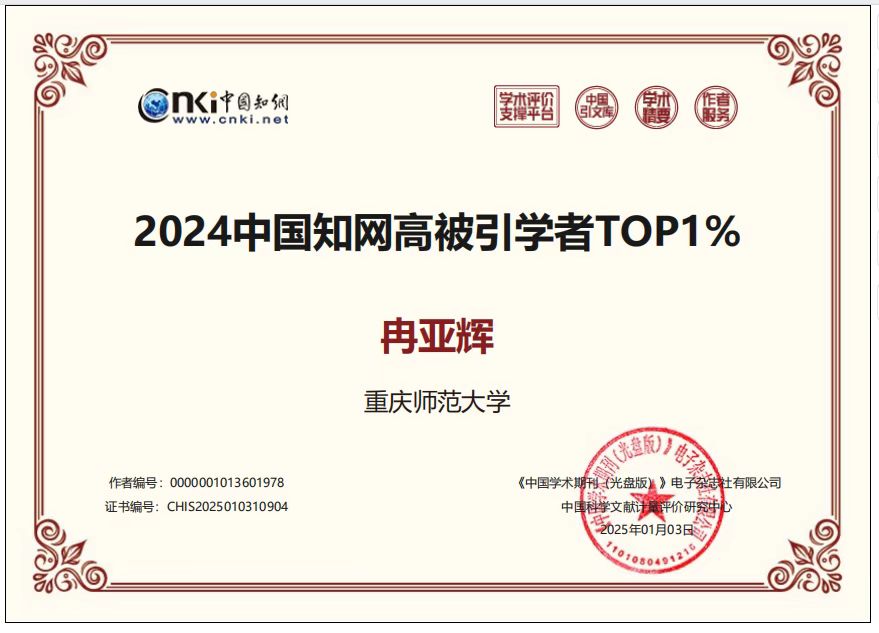 近日,中国知网中国科学文献计量评价研究中心公布了“2024中国知网高被引学者”预发布名单,我院冉亚辉教授、张虹副教授、首新副教授入选教育学学科“2024中国知网高被引学者Top1%”榜单。