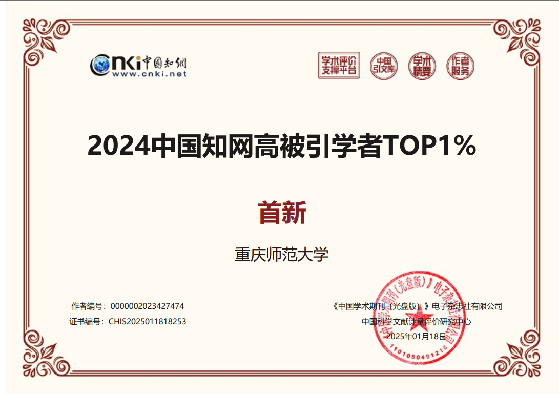 入选“2024中国知网高被引学者TOP1%”需满足三个条件:一是近十年(2014—2023年)发文的作者总论文引用标准化指数(Paper Citation Standardized Index,简称PCSI)要位于初选作者范围的TOP1%。该初选作者范围涵盖3万名学者,其基线值为31.016。二是近十年发表的PCSI高于理论平均值(1.65)的论文数量需不少于5篇,这体现了学者持续且高质量的学术产出。三是近十年至少要发表1篇高影响力论文,彰显了其在学术领域的卓越引领力。