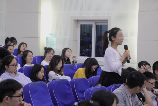 首先,王校长提出,科学教师的高素质专业化需要从学习(阅读与观察)、实践(教学与研究)以及写作(记录与写作)三大方面进行培养。他谈到,读书既要读有字之书,即经典名著;又要读无字之书,即向学生学习、向同行学习,走进社会、贴近生活。随后,王校长向同学们展示了外出调研的所见所感,并通过教学实例阐释了科学课程核心素养的四个要求。最后,王校长强调“阅读和实践滋养教师的底气,思考带来教师的灵气,而写作造就教师的底气。”鼓励学生们通过写作与思考提升教师底蕴。