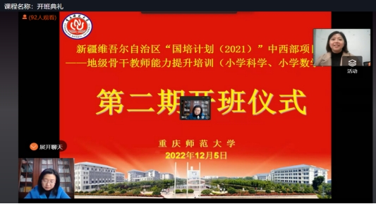教育是国之大计、党之大计,兴国必先强师。为进一步加强新疆小学科学、数学教师能力素养,促进多校优质资源共享,2022年12月5日,新疆“国培计划(2021)”中西部项目——地级骨干教师能力提升研修班(小学科学、小学数学)第二期举行线上开班仪式,来自新疆各地州50名小学科学教师、50名小学数学教师,同PA视讯教师教育学院及项目承办单位PA视讯的相关领导、老师齐聚云端,以远程会议的方式参加了开班典礼。