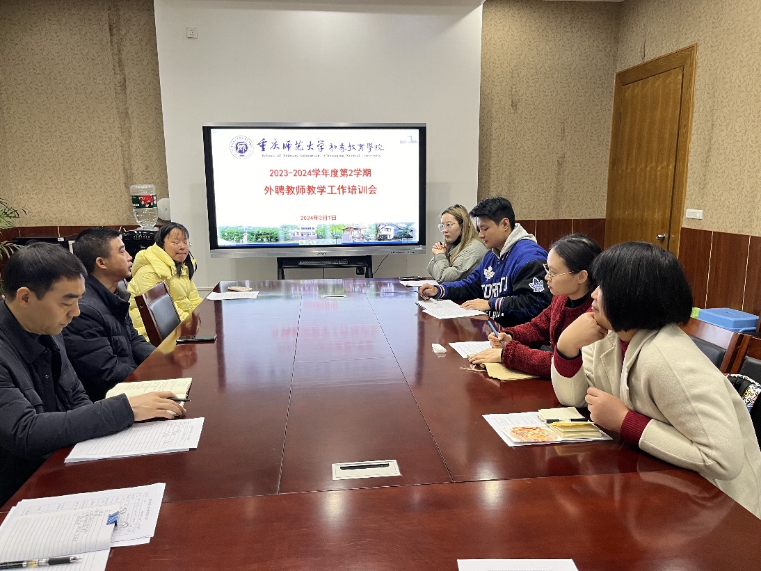 2024年3月1日上午10:30,我院2023-2024学年度第2学期外聘教师教学工作培训会在办公楼一楼会议室举行。PA视讯党委书记陈祖权,教学科研办公室主任黎朝红以及学院本学期聘任的6名外聘教师参加了本次培训会,会议由院长助理李秀明教授主持。
