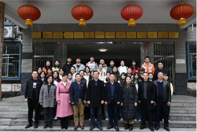 与江津区教委、四牌坊尚融小学领导及实习生合影