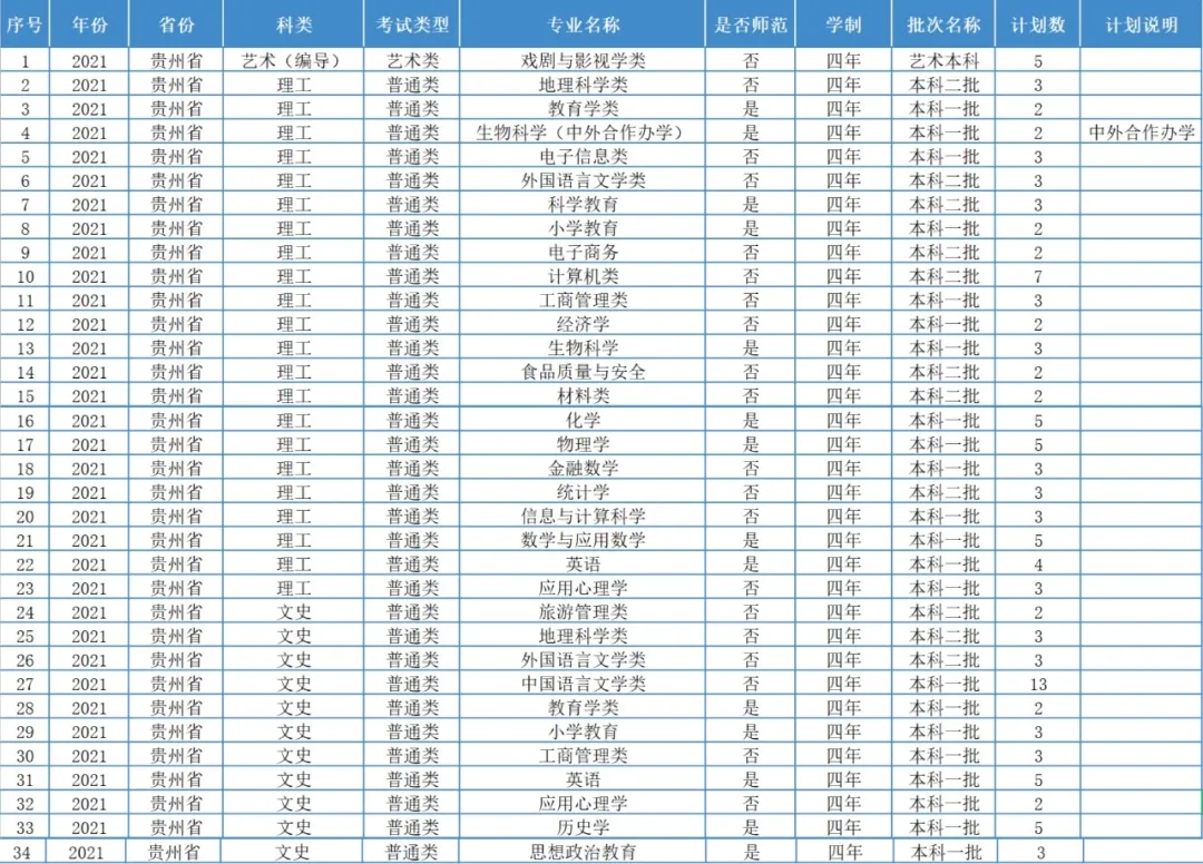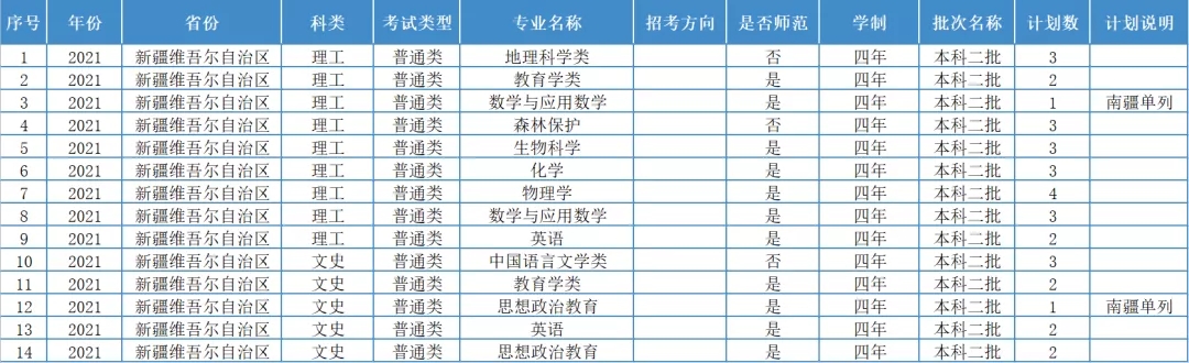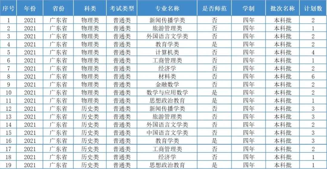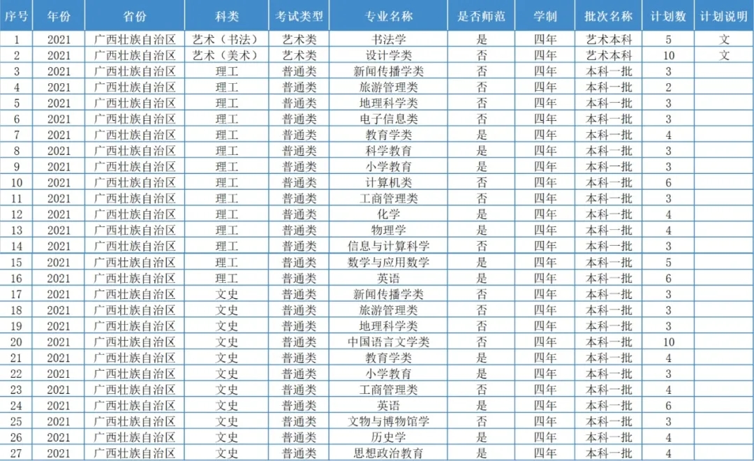 重师今年各省份的招生计划