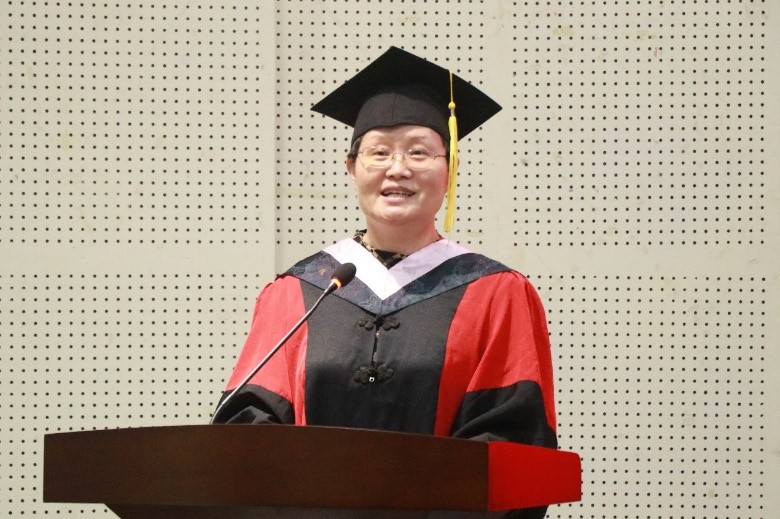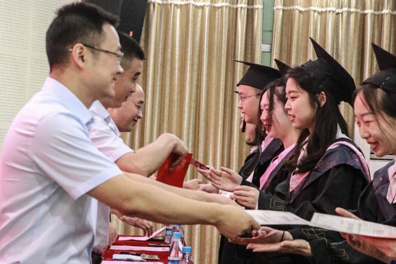 随后,典礼进行2022届毕业生授位仪式。学院副院长蒲淑萍教授宣读2022届毕业生授位决定,学院学位评定委员会主席、院长郝明君教授为获得授位资格的毕业生逐一授位。