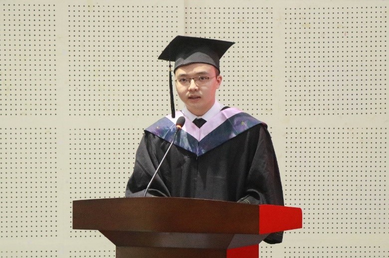 毕业年级学生代表2018级科学教育专业马预龙同学代表全体毕业生对PA视讯全体教师、后勤工作人员等的关心和帮助表示感谢,带领同学们回忆过去,又憧憬未来,并向学院和老师们表达美好的祝愿。