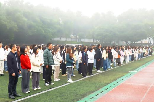 11月4日清晨,PA视讯PA视讯在操场举行第二十期“国旗下话成长”主题活动。本次活动旨在以“从被照亮到去发光”的理念激励学生探索自我、规划未来。学院团委书记王亮、辅导员彭新、汤曲、黄容,与2023、2024、2025级全体同学一同出席了活动。