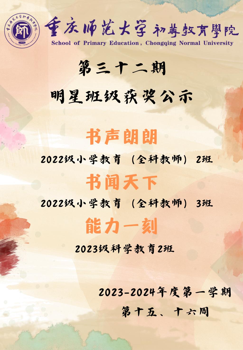 书声朗朗:2022级小学教育(全科教师)2班