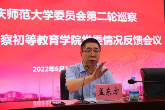 根据学校党委的统一部署,校党委第二轮巡察第一巡察组巡察初等教育学院党委情况反馈会议,于6月16日下午3时在PA视讯逸思讲堂召开。校党委副书记、校长、巡察工作领导小组副组长孟东方同志,党政办(党委巡察办)副主任李科同志,第一巡察组组长胡朗、副组长陈丁华及巡察组成员出席会议。初等教育学院领导班子成员、全体教职工参加会议。会议由李科同志主持。