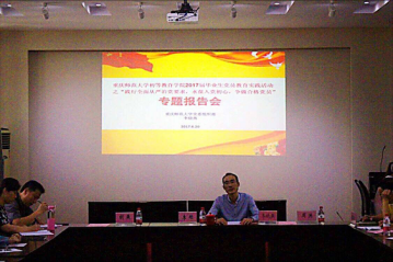 在庄严的国歌奏唱后,活动进行第一项议程,特邀校党委组织部副部长李晓燕为全体毕业生党员做了“践行全面从严治党要求,永葆入党初心,争做合格党员”的专题报告会。李部长详细系统地给在座党员同志介绍解读了“全面从严治党”的背景意义以及深刻内涵,并为毕业生党员如何保持初心、怎样做合格党员提出中肯的建议。他谆谆告诫在座党员同志要加强理论学习,提高党性修养,坚持马克思主义信仰,发挥党员的先锋模范带头作用,砥砺前行。