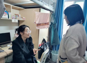 手牵手、心连心,党员同学在行知小学宿舍内密切关心同学,坚守在疫情防控前线。