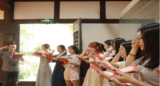 参观结束后,支部书记王亮老师带领大家前往孚生文创空间为毕业生党员过政治生日,还为毕业生党员准备了生日贺卡作为纪念,鼓励支部其他党员在生日贺卡信封上签名,并采取一对一赠送贺卡的方式让大家彼此认识。“政治生日”是一种政治仪式,通过这种庄重的仪式感,可以充分传递党组织的关心、希望和鞭策,提醒激励各位党员不忘初心、牢记使命、奋发作为。