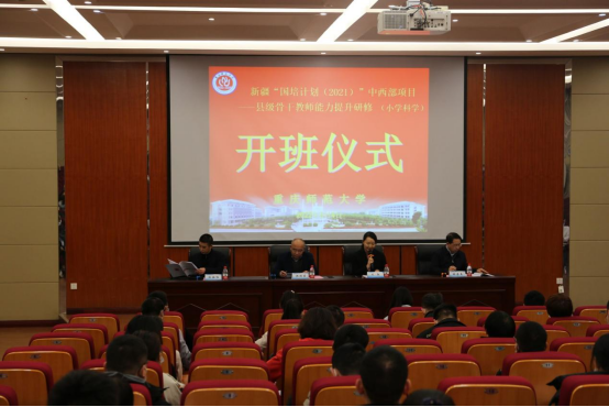 2022 年3月4日,新疆“国培计划(2021)”中西部项目——县级骨干教师能力提升研修(小学科学)班在PA视讯继续教育学院第五教学楼正隆重开班,来自新疆各县区 100 名小学科学教师齐聚一堂,同PA视讯继续教育学院国培项目的负责领导举行开班典礼。